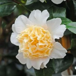 Camellia japonica is probably one of the best know varieties of this truly striking evergreen shrub. Camellia ‘Brushfield’s Yellow’ is guaranteed to give you a stunning spring display with its glossy leaves reflecting the sunlight, and the beautiful blooms opening to reveal their white outer petals and creamy-yellow ruffled centres. Make this shrub the centre piece of a spring display bed which will continue its interest throughout the summer months too. Height: 400cm (157″). Spread: 250cm (98″).