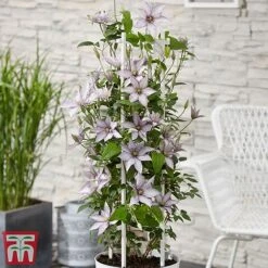 Transform your patio with this eye-catching collection of Clematis. Each of these free-flowering varieties has a neat, compact habit. This makes them perfect for growing in patio containers, trained onto an obelisk or against a fence or wall. Equally good in borders, they will provide an enviable display of bold colour throughout the summer months. Height: 150cm (59″). Spread: 100cm (39″).