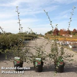 This tough but beautiful shrub offers multiple seasons of interest, evergreen colour and excellent wildlife value. Cotoneaster lacteus forms a small, multi-stemmed evergreen tree or large shrub densely cloaked in leathery, dark green leaves with furry white undersides. In spring, it is covered in large clusters of small white flowers that provide an early source of food for pollinators. The flowers are followed by clusters of orange-red berries which persist into winter. This robust shrub is highly adaptable, tolerating coastal sites, cold north-facing positions and poor, dry soils. Use it as a background shrub, a stand-alone specimen or for a dense, screening hedge. RHS Award of Garden Merit. Average growth 20-40cm per year. Maximum height and spread: 2.5-5m (8-16ft).
