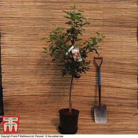 Crab Apple ‘Nuvar Marble’ is a modern, British-bred variety that looks magnificent in autumn. The large, orange fruits are blushed red with glossy skins that glow in the autumn sunshine. This variety ripens early, giving you plenty of opportunity to make delicious Crab Apple jelly. This deciduous, small tree provides plenty of ornamental interest throughout the year. Spring sees the branches covered in white blossom, which stands out from the dark green foliage. The leaves also take on attractive autumn shades later in the year. Height: 5m (16’). Spread: 4m (13’).