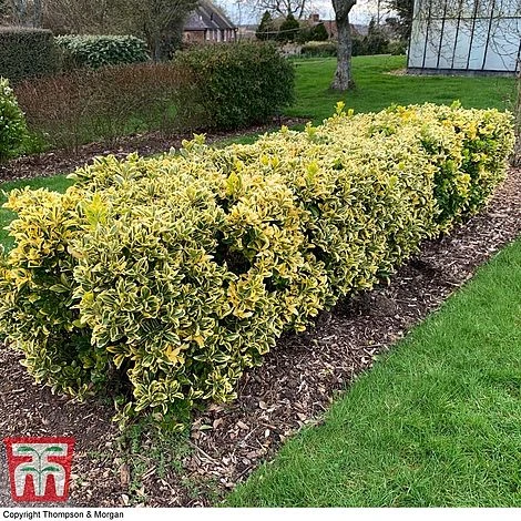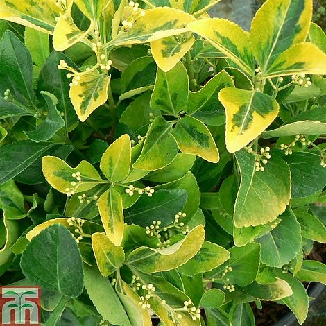 This colourful hardy evergreen brings a permanent splash of colour to the garden. The glossy green leaves are edged with dazzling gold margins that catch and reflect the light – perfect for brightening up those lightly shaded corners of the garden. With maturity, it occasionally produces early summer flowers which are followed by greenish-pink fruits. This fearless shrub is tolerant of sun, partial shade, coastal conditions, and exposed windy locations. Euonymus japonicus ‘Ovatus Aureus’ is a tough ‘all rounder’ that well deserves its RHS Award of Garden Merit. Height: 100cm (39″). Spread: 150cm (59″).