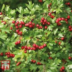 Often seen in natural hedgerows, Hawthorn is the perfect security hedging, its thorny braches form a dense thicket that is almost impossible to penetrate. Not only is the Hawthorn a great deterrent, it is a highly decorative shrub too, clusters of white flowes can cover it in late spring which later develop into bunches of bright red berries which are much sought after by birds. Height: 8m (26′). Spread: 8m (26′). Planting distance: 30cm (12” ). (4 plants per metre for a single line hedge).