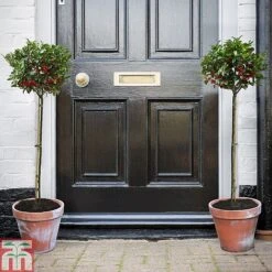 The glossy red berries of this blue Holly are a sure sign that Christmas is approaching! This eye catching evergreen is supplied as a standard tree, making the perfect container plant for framing your front door.