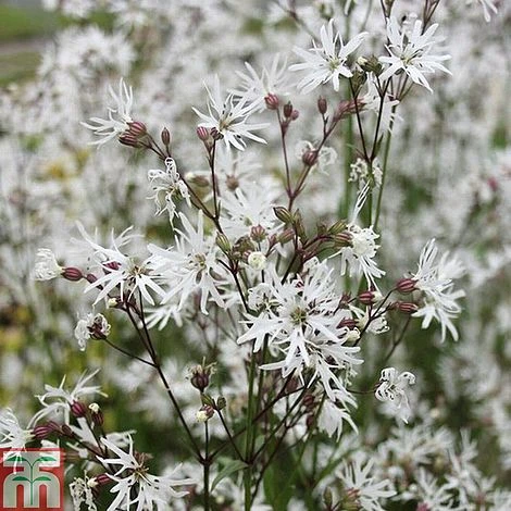 A white colour variation of the wildflower Ragged Robin. Lychnis flos-cuculi ‘White Robin’ produces pretty clusters of starry white blooms that rise on upright stems throughout summer. This hardy perennial is particularly attractive to butterflies and pollinating insects making it a useful addition to wildlife areas. Originating from damp areas, Ragged Robin will thrive in difficult clay soils, boggy areas or planted around the edges of ponds. Height: 70cm (28″). Spread: 40cm (16″). Planting depth: Zones 1 & 2 to 10cm (4″) below water level.