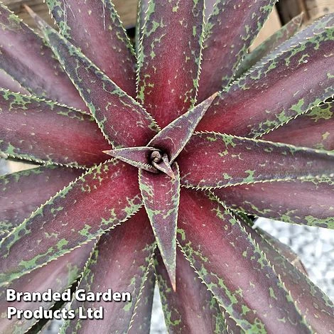 From the MAD ABOUT MANGAVE® Collection, Mangave ‘Blazing Saddles’ will blaze a trail of glory on your patio! A bold silhouette of fleshy, evergreen, spiky leaves forms a concentric star, each leaf blade heavily marbled with deep maroon spots against a pale green background. The margins of each sharply pointed leaf have tiny spines like a fine comb.