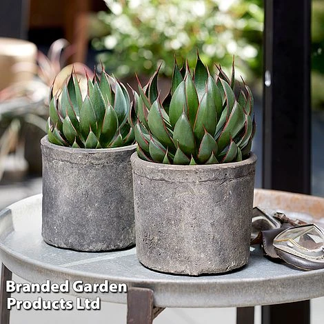Something completely different for your Mangrave collection! One of the ‘MAD ABOUT MANGAVE®’ Series, Mangrave ‘Praying Hands’ is an extraordinary departure from the usual star-shaped rosettes. Each dark green, scale-like leaf curls upwards into the elegant form of an artichoke. The tip of each leaf is finished with a maroon spine, the spines converging at the top where the artichoke comes to a point.