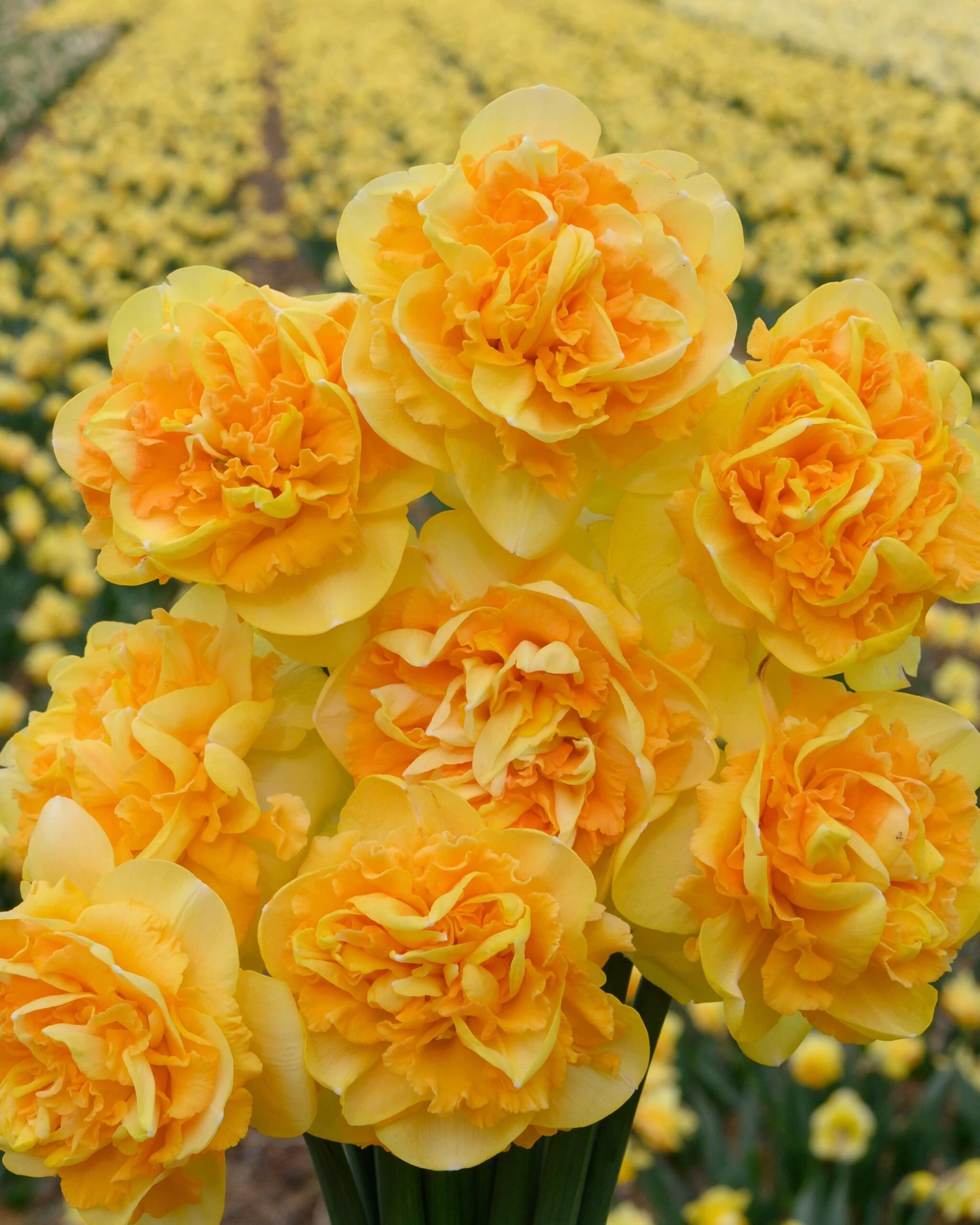 One of the most beautiful Narcissus we’ve seen, Narcissus ‘Art Perfume’ opens up like a bowl of prettiness for your viewing pleasure. With a flat face that displays all of the treasures within, you can fully appreciate the rounded, primrose yellow petals that border a tightly ruffled, orange double corona. As well as those lively good looks, Narcissus ‘Art Perfume’ has a captivating perfume—hence the name—which will surely put it at the top of your spring flowers wishlist.