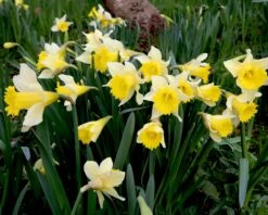 It is believed that this is the narcissus that inspired one of the most famous poems in the English language: Wordsworth’s I Wandered Lonely as a Cloud, whilst he was walking along the shores of Ullswater in the Lake District. Garden forms of this plant are generally more upright than those seen growing in the wild. All have grey-green leaves, up to 50cm long.