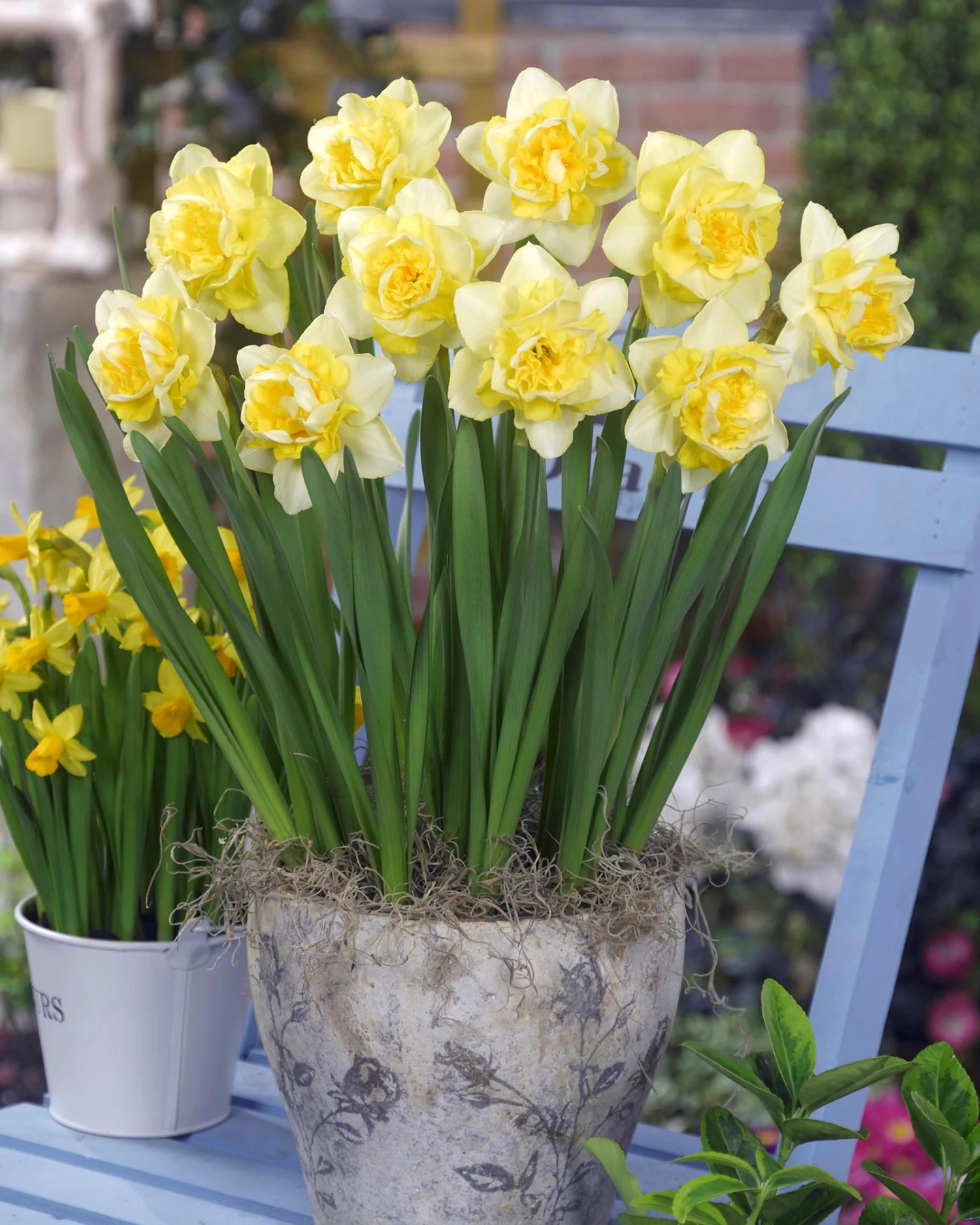 Plant swathes of radiant Narcissus ‘Spring Paradijs’ and you’ll be all set for a sunny spring glow, whatever the weather. This extra special double daffodil dishes out plenty of spring cheer with its huge, petal-packed blooms and heady, sweet fragrance. These golden girls have tall stems which makes them completely unmissable in the garden, and of course outstanding material for beautiful bouquets. Whilst tall, the stems of Narcissus ‘Spring Paradijs’ are remarkably sturdy, supporting those impressive, chunky yellow flowerheads for a strong, long-lasting and undeniably uplifting show.     Â