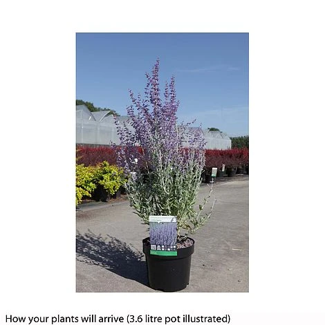 A smaller, more compact variety of the Russian Sage, Perovskia atriplicifolia ‘Little Spire’ maintains all the characteristics of its large cousins without taking up as much space. Ideal for containers as well as bed and borders, this drought tolerant perennial has the advantage of the smaller flower stems not bending over under thir own weight, thus keeping its shape and form perfectly. Height: 100cm (39″). Spread: 60cm (24″).