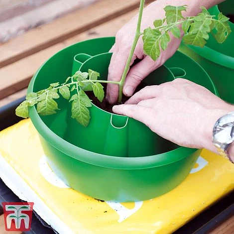 Plant Halos are the perfect way to grow vegetable plants including tomatoes, peppers and beans, offering an all-in-one plant support and watering solution. The perfect match for the veg plot, raised beds, large pots (26cm diameter minimum) or grow bags, the inner section of each Plant Halo creates a raised planting zone, giving plants more room to thrive. Self-watering for 3-6 hours, the 3.1-litre reservoirs feature six watering spikes, which penetrate the surface by 2.8cm (1“) to deliver water and plant food directly to each plant’s roots. Plant Halos feature a cane support system with anchor points on each inner pot, plus a cane grip above to create a study frame from up to four canes (canes not included). Manufactured from recycled, UV stabilised plastic. 5-year guarantee. Height: 16cm (6″). Width: 29cm (12″). Depth: 29cm (12″).