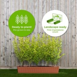 Privet hedging such as the Ligustrum Ovalifolium Aureum Trough Hedge is perfect for gardens with limited outdoor space. Privet hedging can be used as an ‘Instant Hedging’ solution, meaning it is ready to plant right away when delivered. An appealing benefit of Privet hedging like this Ligustrum hedge is its rich yellow edger against its pure green leaves that give off a vibrant and bright aesthetic. When trimmed with the top slightly narrower than the base as seen in Privet trough hedges, the leaves will stay at ground level creating an attractive and uniformly neat look. Privet hedging is known to be a semi-evergreen plant and may lose some of its leaf in cold winters or harsher condition areas but will more than likely flush back into its original shape for years to come.
